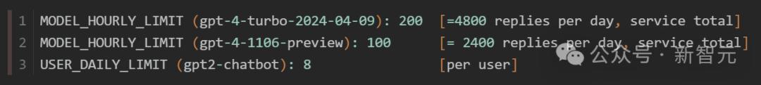 「GPT2-chatbot」在直接聊天功能上的速率限制与GPT-4模型有所不同: