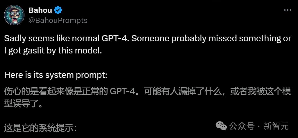 不过,后来有网友指出,可以通过下面这个prompt搞到「gpt2-chatbot」的系统提示。