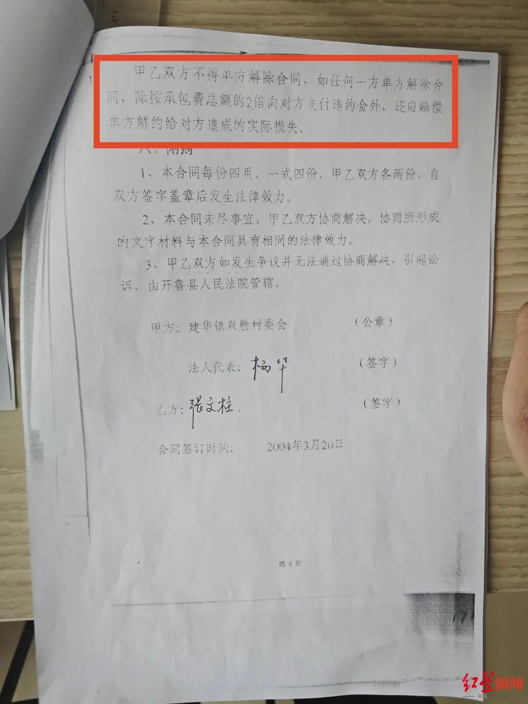 此前报道:开鲁县土地“有偿使用费”再调查:张家兄弟称是招商引资而来,早年平整土地花费巨大4月29日,红星新闻从开鲁县委相关部门获得了2004年双方签订的土地承包合同,当中明确,乙方在双胜村荒沼草甸子兴建奶牛养殖场事宜,乙方在承包期内不改变土地用途并保证奶牛养殖头数。合同中明确,承包期限为30年。