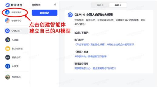 我先打开智谱清言,点进创建智能体。