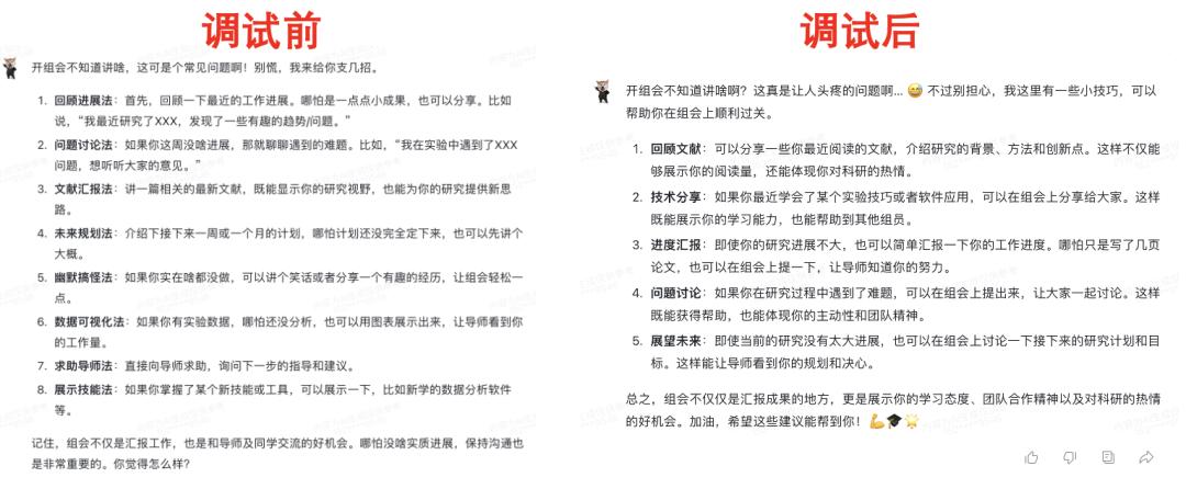 你看看这老练的,没在实验室呆过五六七八九十年的都不会有这个洞察不过作为一个让大家聊着玩的智能体,我觉得它可以有点小表情,让聊天氛围感更轻松