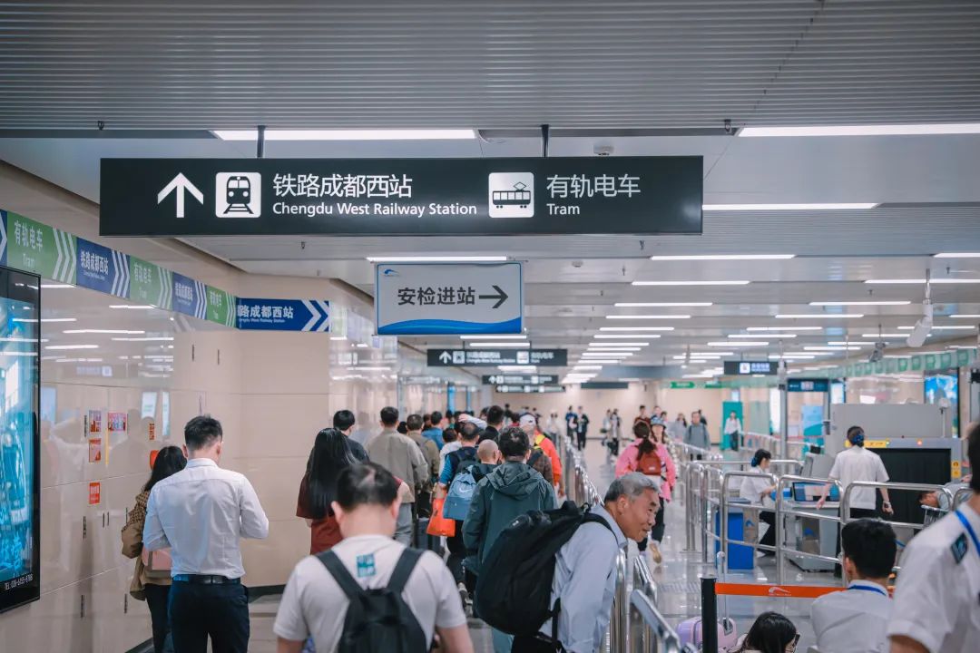 地铁成都西站一共有8个出入口,对于进站乘客来说,比较特殊的是A口(A1、A2)。从该口进站的乘客可根据自己实际情况,选择不同方向的安检点通过闸机。