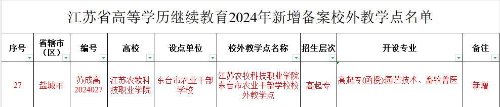 近日,省教育厅发布通知,市农干校获批为江苏农牧科技职业学院高等学历继续教育校外教学点。招生层次为高起专(函授),开设专业为园艺技术、畜牧兽医。这是江苏农牧科技职业学院在盐城市设置的唯一教学点。
