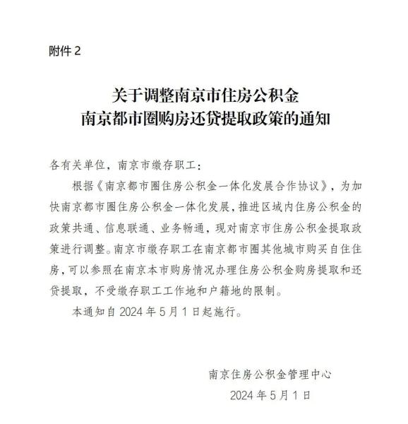 三、南京市住房公积金贷款和提取政策,可登录南京住房公积金管理中心门户网站(http://gjj.nanjing.gov.cn/)或拨打住房公积金服务热线025-12329了解咨询。南京都市圈其他城市的住房公积金跨地区贷款和提取政策,以当地住房公积金管理中心发布为准。