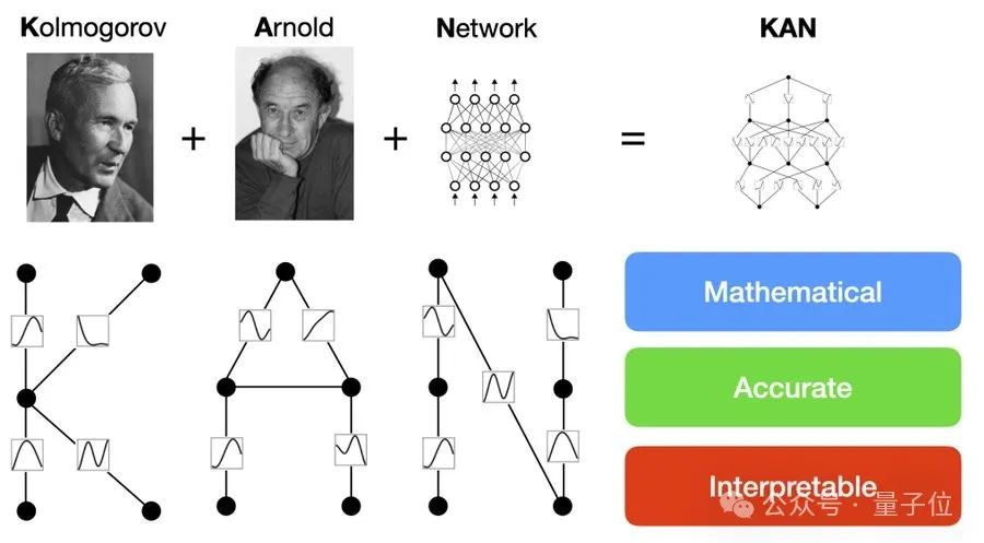 为了纪念两位伟大的已故数学家Andrey Kolmogorov和Vladimir Arnold,我们称其为科尔莫格罗夫-阿诺德网络(KANs)。