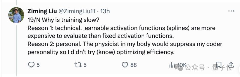 对于训练速度慢的问题,MIT博士生一作Ziming Liu解释道,主要有两个方面的原因。