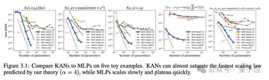 神经缩放规律:KAN 的缩放速度比 MLP 快得多。除了数学上以Kolmogorov-Arnold 表示定理为基础,KAN缩放指数也可以通过经验来实现。