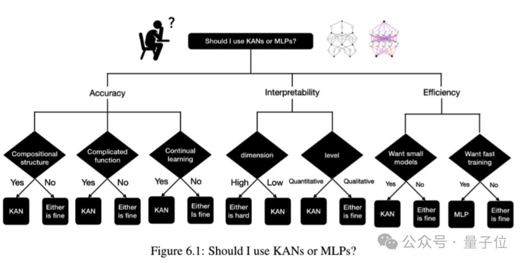 最后,论文中还贴心的给出了“何时该选用KAN?”的决策树。