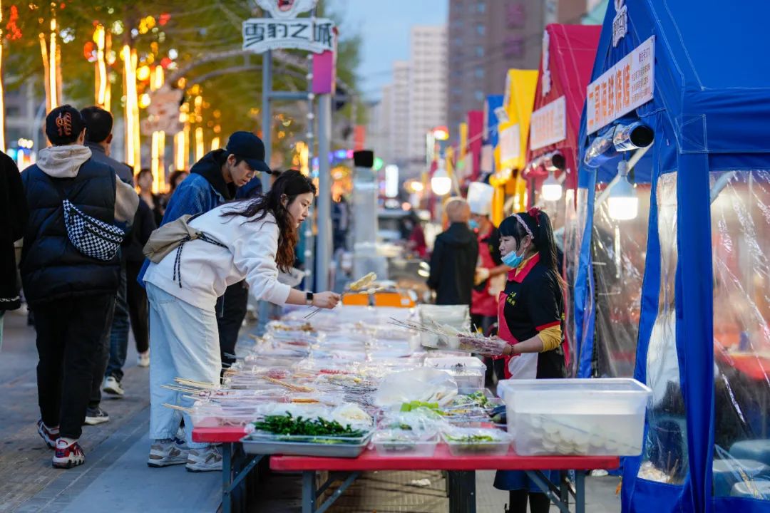 今年以来,西宁正锚定打造生态旅游中心城市目标,依托青海独特的旅游资源优势,抢抓机遇,用足用好省市联动工作机制,高目标高定位高品质推进街区建设。城北区委区政府紧紧围绕提升旅游服务品质整体部署安排,以“美食一桌菜”“夜游经济集中区”“旅游购物集中区”等为切入点,通过以点带面、拓面成片设计规划,全力打造城北区特色文旅街区。负责运营街区管理的西宁城北投资管理有限公司相关负责人介绍,为将特色街区与文化、旅游等元素有机融合,为市民、游客提供全新的消费体验,美食街融入了雪豹元素,同时进行了地坪、灯饰亮化、网红标语等基础设施的完善,豹街分为三个区域,海鲜烧烤区主要为东北烧烤,特色美食区集中了汪家寨非遗老八盘、晋家湾土火锅、湟源酸辣里脊、馓子、甜醅等。文创区更有青海文创雪糕亮相,精美的非遗手工艺品等。