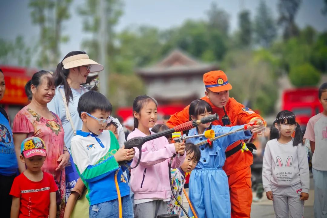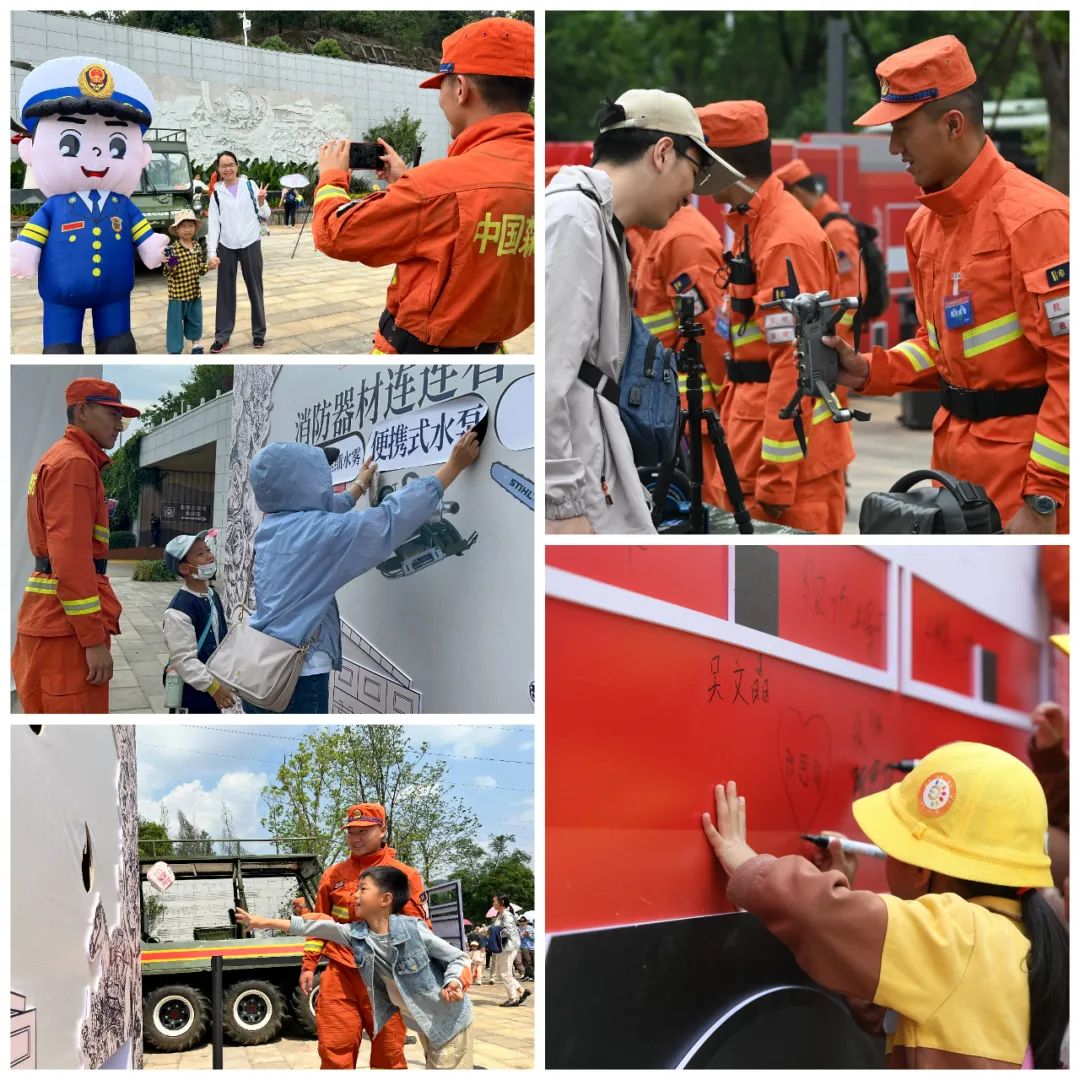5月1日上午9时,在西山风景区入口处,两个消防卡通人偶吸引了大批游客驻足拍照打卡。随着现场消防员的引导,游客们纷纷到装备展示区参观救援装备,现地体验装备的操作使用。随后来到游戏互动区域,消防员设置了投掷灭火弹、风力灭火机翻牌、消防器材连连看三个趣味游戏,互动游客使用沙包投入预设的火苗洞中,模拟消防员投掷灭火弹,使用风力灭火机将预设的火苗板吹翻,模拟现实中风力灭火机灭火。在消防器材连连看游戏中,游客根据装备图片的样式,结合消防员提示的用途,将手中风力灭火机、油锯等对应名称张贴在对应装备上,游客在趣味游戏中通过互动体验方式学习了消防知识。