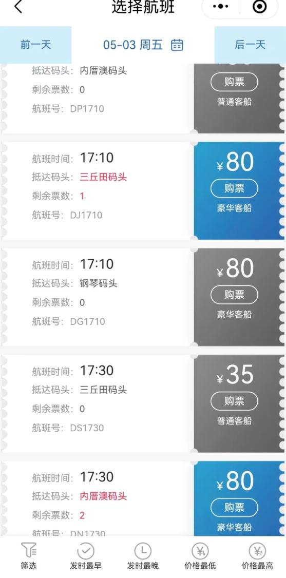 5月3日船票余量不多