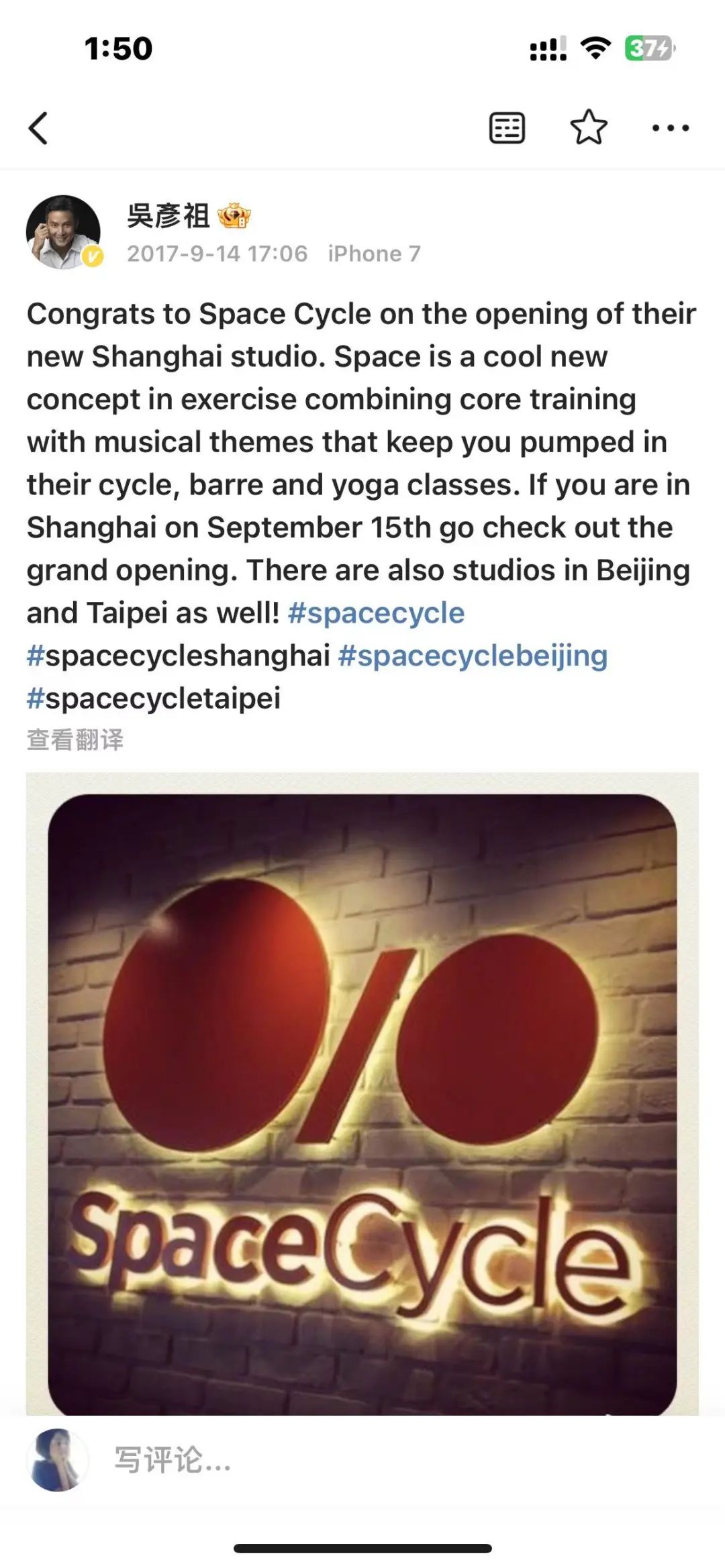 SpaceCycle由前索尼音乐台湾及内地制作人Matthew Alison于2015年创立,据懒熊体育报道,该公司早期先后获得了包括吴彦祖在内的多名演艺人士的个人投资。蓝鲸记者发现,从2017年起曾多次在微博为Space站台。