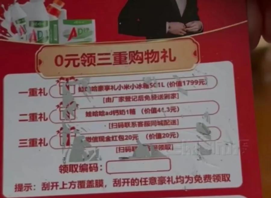 王女士刮开覆膜后显示她中了价值1799元的小米冰箱