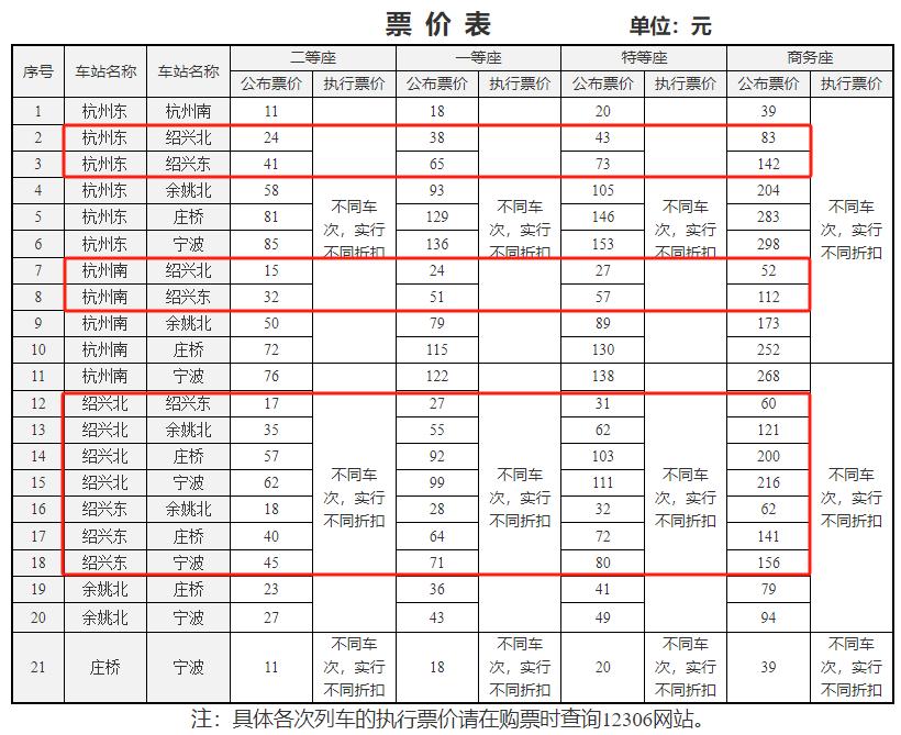铁路12306网站发布公告:6月15日起,铁路部门将对杭深铁路杭甬段(杭甬高铁)上,运行的时速300公里及以上动车组列车公布票价进行优化调整!杭甬高铁票价如何变化?一起来看↓↓