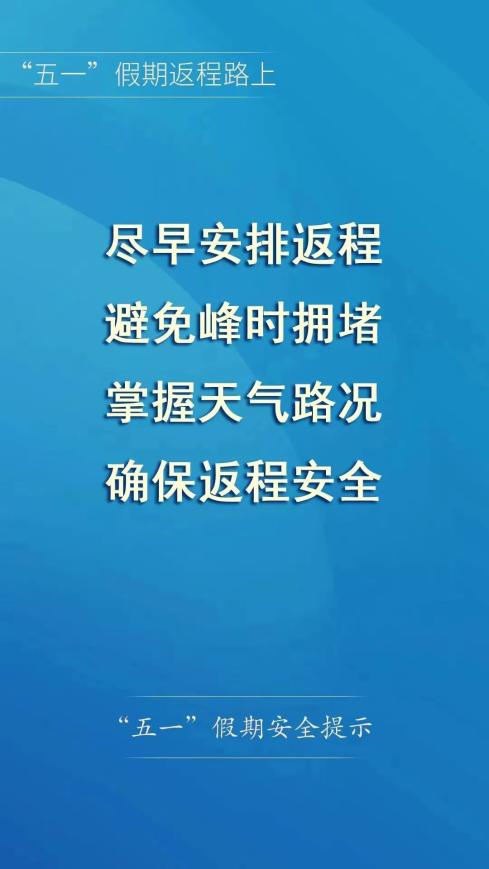 随着“五一”小长假接近尾声,外出游玩、探亲访友的人们已经开始陆续筹划返程事宜。江西公安交警发布“五一”假期返程提示,请广大交通参与者避开返程高峰易堵路段,小心驾驶,安全文明出行。