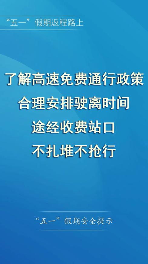 免费时间:高速公路免费通行时间:5月1日0时起 — 5月5日24时