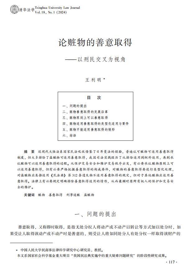 原标题:《仙桃法学家论坛 | 王利明:论赃物的善意取得——以刑民交叉为视角》
