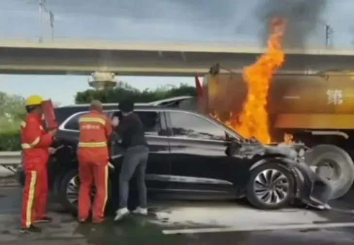 根据此前报道,事故车于高速快车道上与一道路养护车辆发生追尾后起火,多名热心市民尝试营救车内人员,均因无法开启车门而失败。