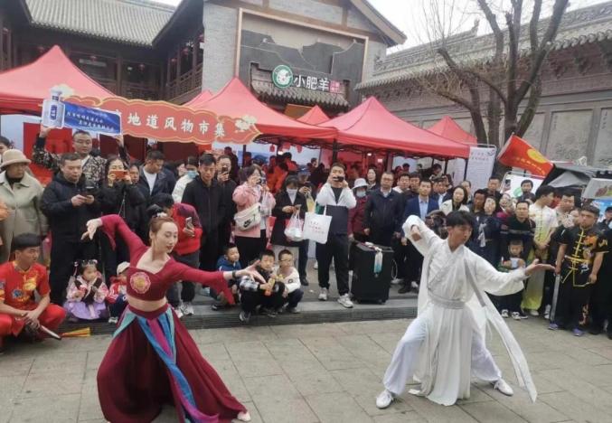 为全力做热“五一”文旅市场,4月27日,平凉市第二届“品美食·游平凉”特色美食文化节暨“甘味”农产品促销活动燃情开启。全市300多家餐饮企业汇聚在崆峒不夜城。华灯初上,不夜城游人如织,热辣鲜香扑鼻而来,静宁烧鸡、庄浪暖锅、崇信红牛肉、华亭核桃包、灵台手工面、泾川罐罐馍等各类美食摊位一字排开,数种香气交织在一起,让人垂涎欲滴,游客们或围坐一起把酒夜话,或手捧美食边吃边玩,享受着惬意欢快的味蕾盛宴。美食集市的另一侧,崆峒武术、秦腔表演轮番上演,掌声、欢呼声此起彼伏,不夜城的欢乐气氛感染着每一位旅客。