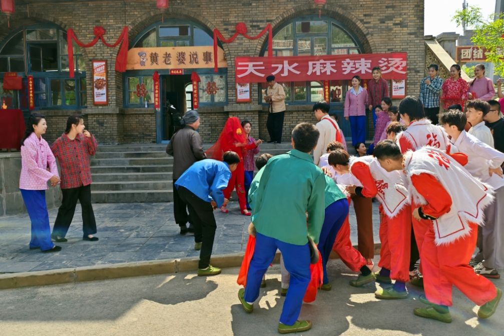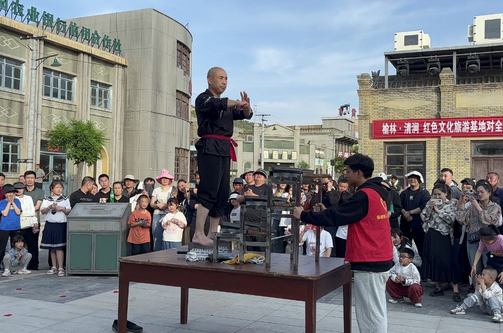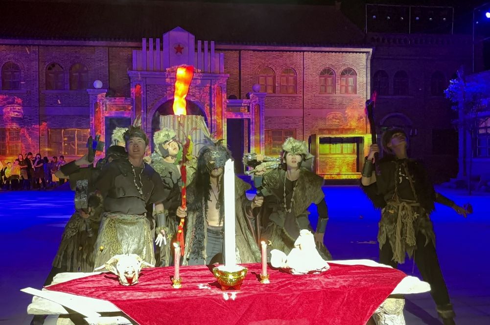 人生影视城是电视剧《人生之路》在清涧的主要取景地,每天都会有全国各地的游客慕名而至。这个“五一”假期,这里更是热闹非凡、游人如织,期间上演的《巧珍出嫁》《80年代快闪》《火车站迪斯科》等剧情互动、具有年代感的节目依旧火爆,吸引着众多游客加入演出队伍体验。《鬼方祭祀》是人生影视城推出的全新节目,在“五一”假期首次上演。该节目根据备受关注的清涧寨沟遗址而创作,将灯光、音乐、人群、文化融为一体,让游客穿越时空、沉浸式体验,在雄浑豪迈的祭祀中领略鬼方魅力、感受殷商文明。