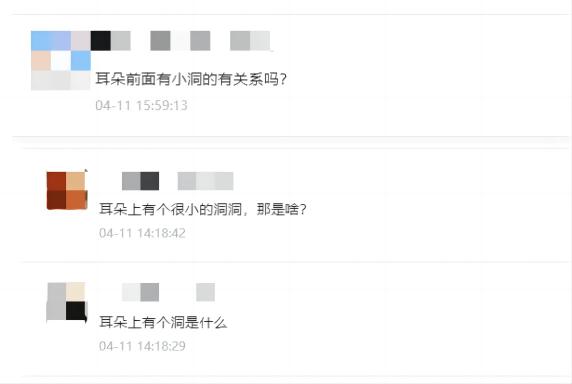 “耳朵前面有小洞的有关系吗?”“耳朵上有个很小的洞洞,那是啥?”