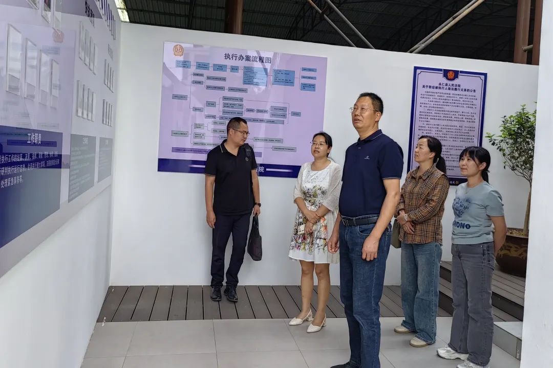 肖院长一行首先到院机关参观了永仁法院执行局、诉讼服务中心、诉前调解室、数字法庭等办公场所,深入了解永仁法院在文化建设、诉源治理、智慧法院建设、公章保管使用等工作中的做法和成效,互相交流了食堂管理运行的具体操作办法,并就如何合理优化资源配置,进一步提升司法效率与审判质效、推进繁简分流等方面作交流。