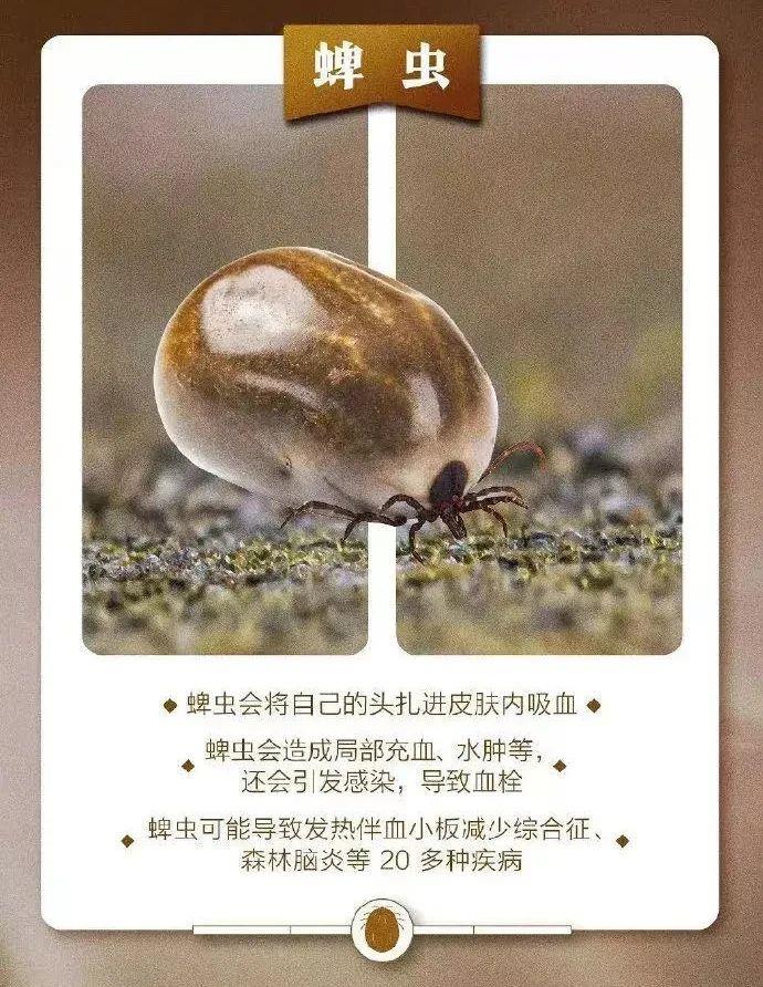 蜱虫是一种吸血的寄生虫,蜱虫吸血之前的体型可能只有一个芝麻粒那么大,但吸完血之后它能增长几十倍甚至上百倍。