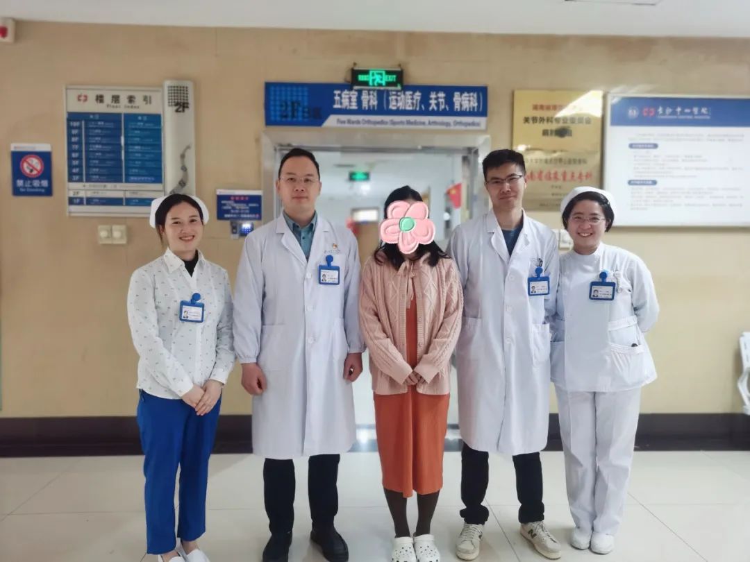 术后第二天,她开始进行功能锻炼,能在床上完成双腿交叉、跷二郎腿的动作;术后第三天,她可以自由行走,完成下蹲动作。