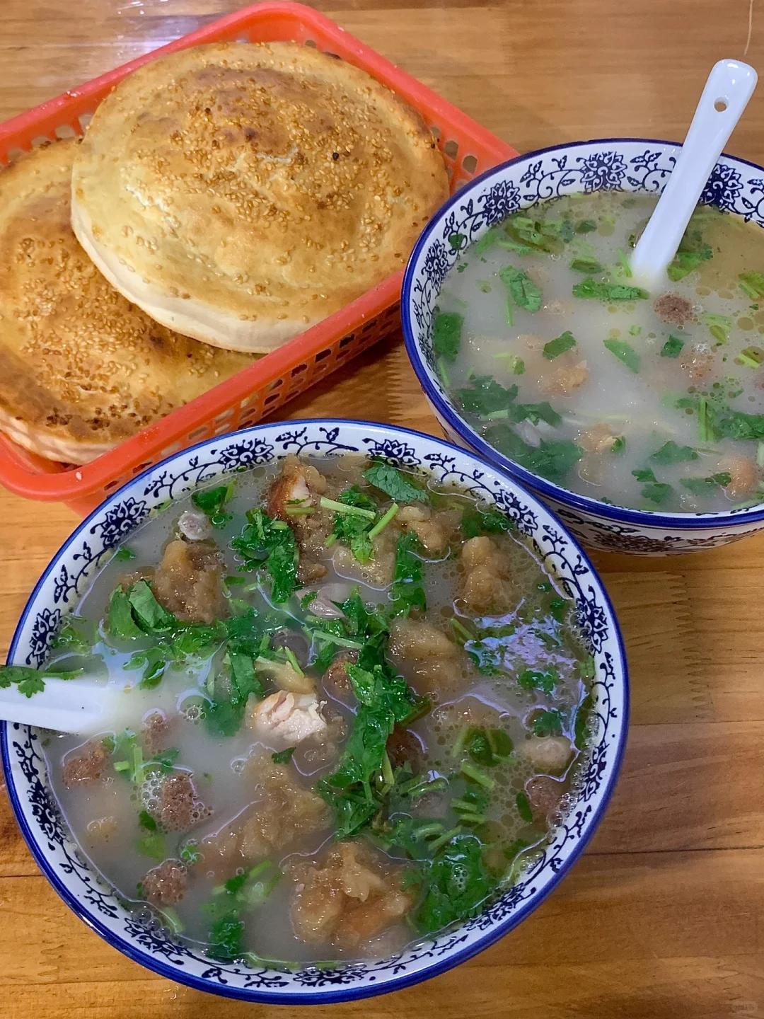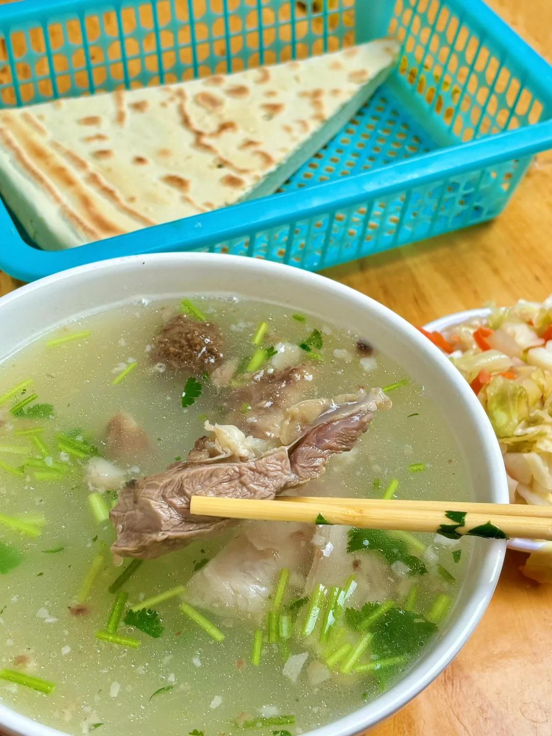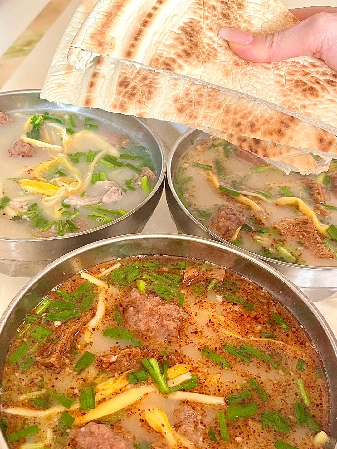 有的店家还会问你要不要加点羊油,随后从沸腾的汤锅内盛一大勺羊汤冲入碗中,乳白色的汤上漂浮着嫩绿的香菜。