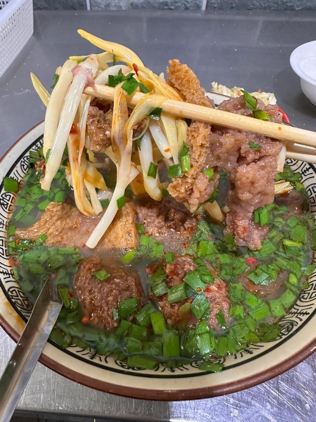 当然,还有牛肉粒、粉芡、细粉条、黄花菜、木耳等配菜,混着粘稠的汤汁一起吃,爽口无比。