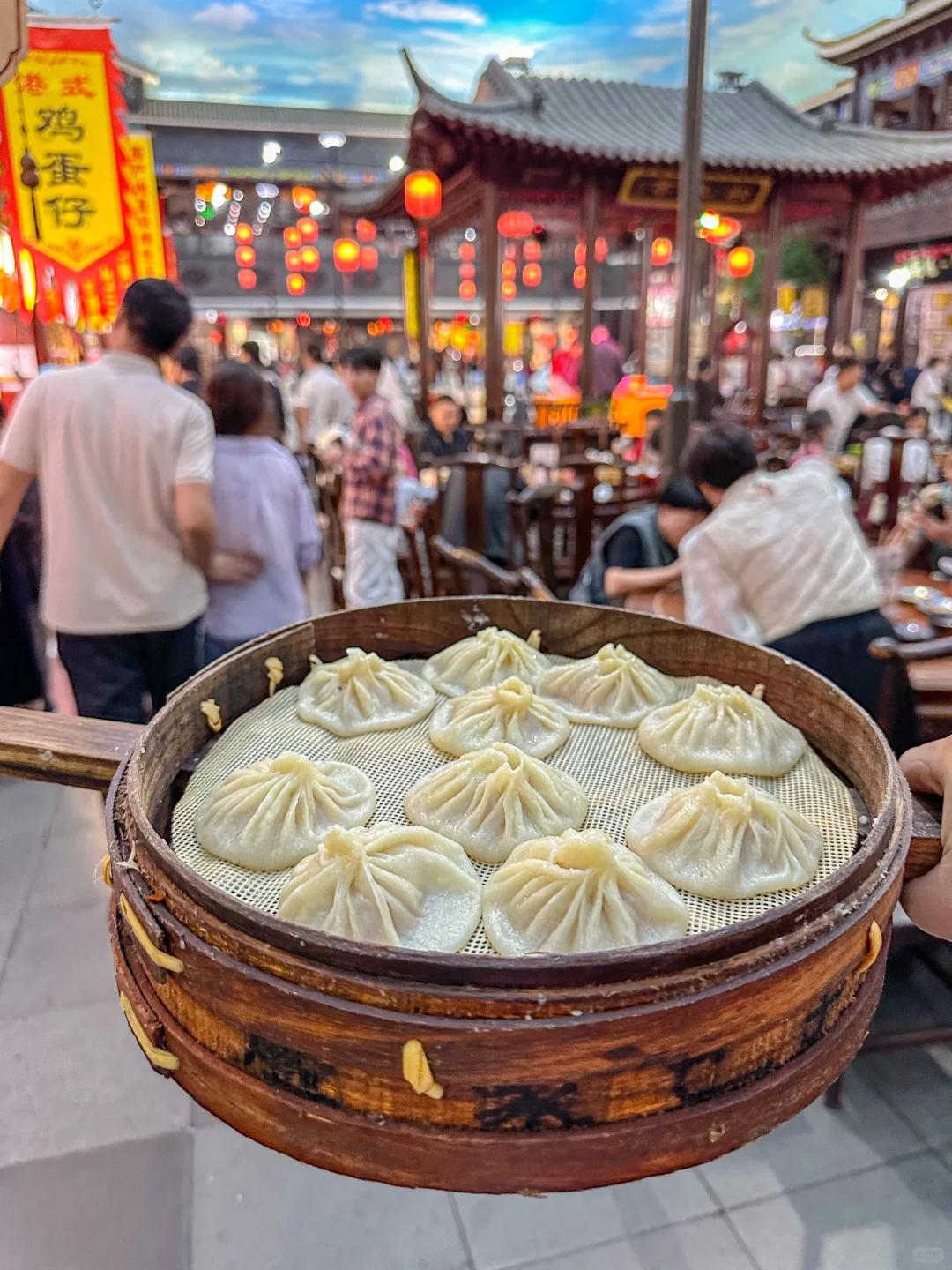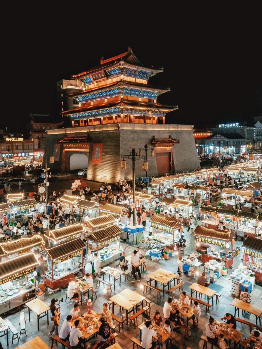 这儿的夜市文化,更领先其他城市一千多年,小吃从街头吃到巷尾。尤其是晚上的时候,灯光亮起,一口爆汁的灌汤包,一口杏仁茶,还有烧鸡、烫面角、壮馍、双麻火烧......