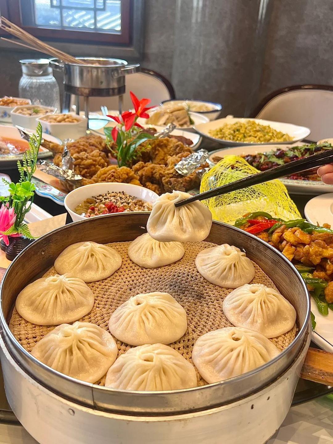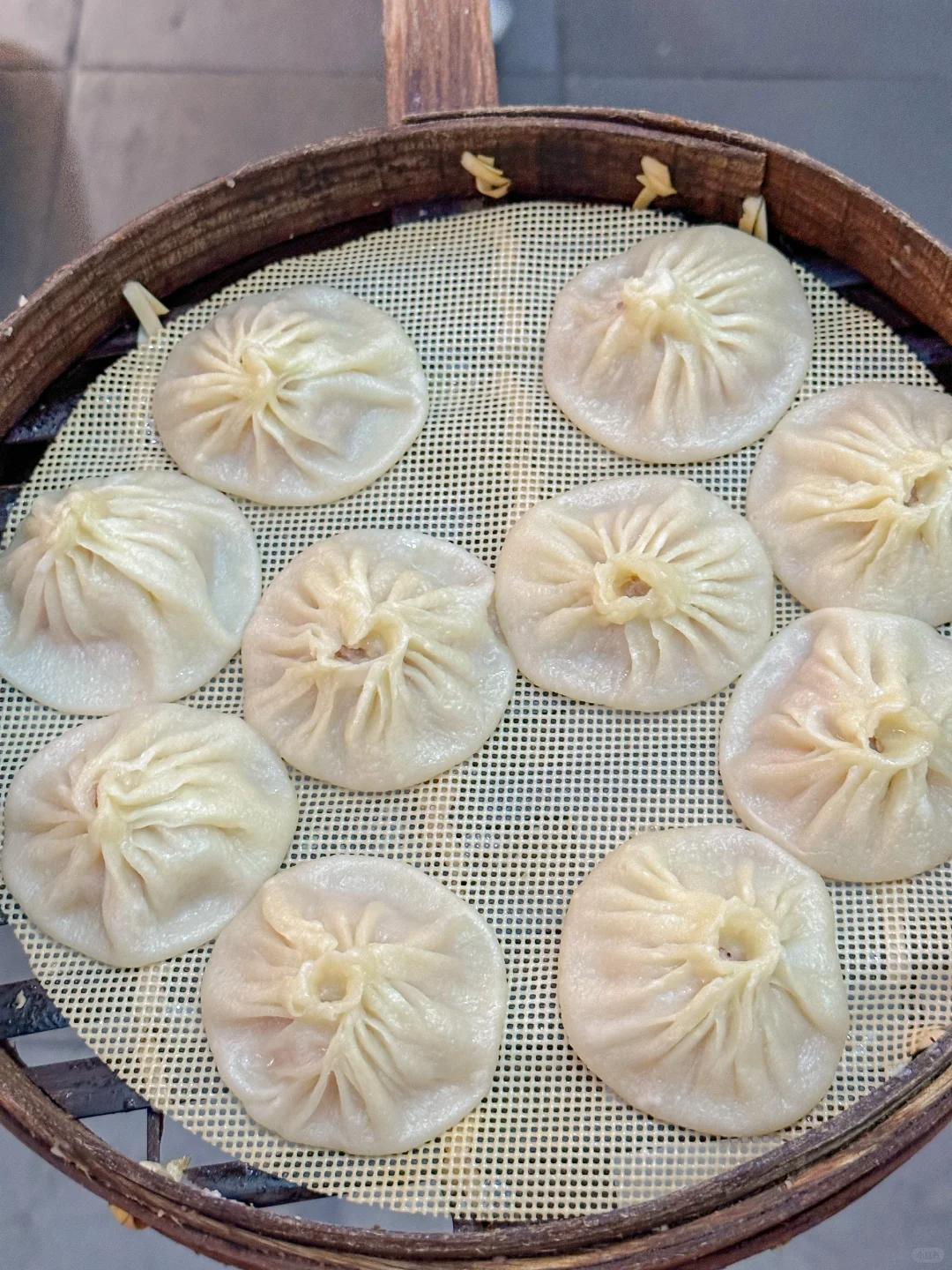 开封的小笼包外观精美,放下似菊花,夹起来像灯笼。皮薄馅多,灌汤流油,鲜香可口,现蒸现吃。