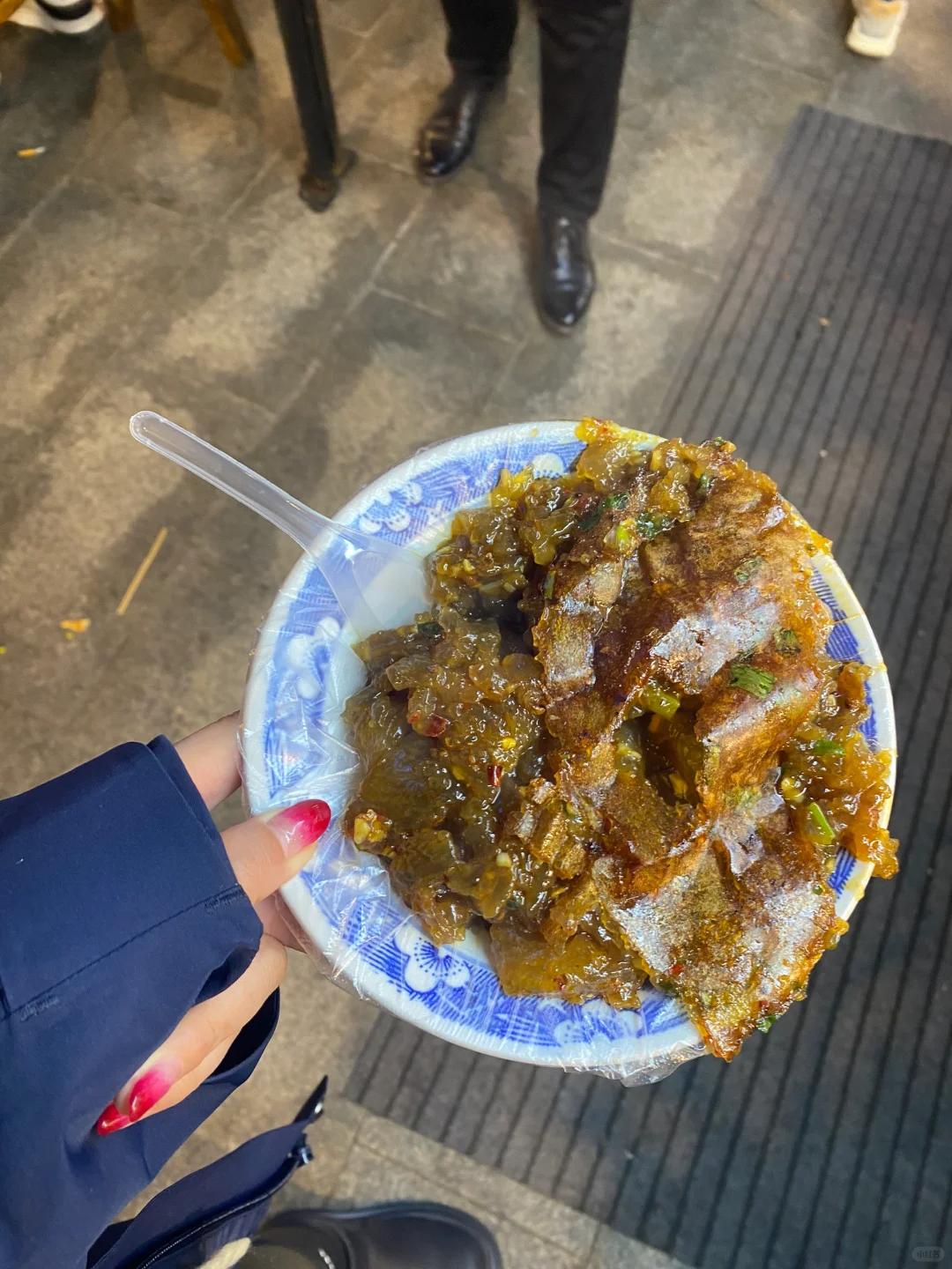 / 炒凉粉 /炒凉粉摊头总是排着长队,滑嫩的红薯凉粉,半焖半炒,酱香浓郁,口感烂糊筋道,还带一点焦皮。