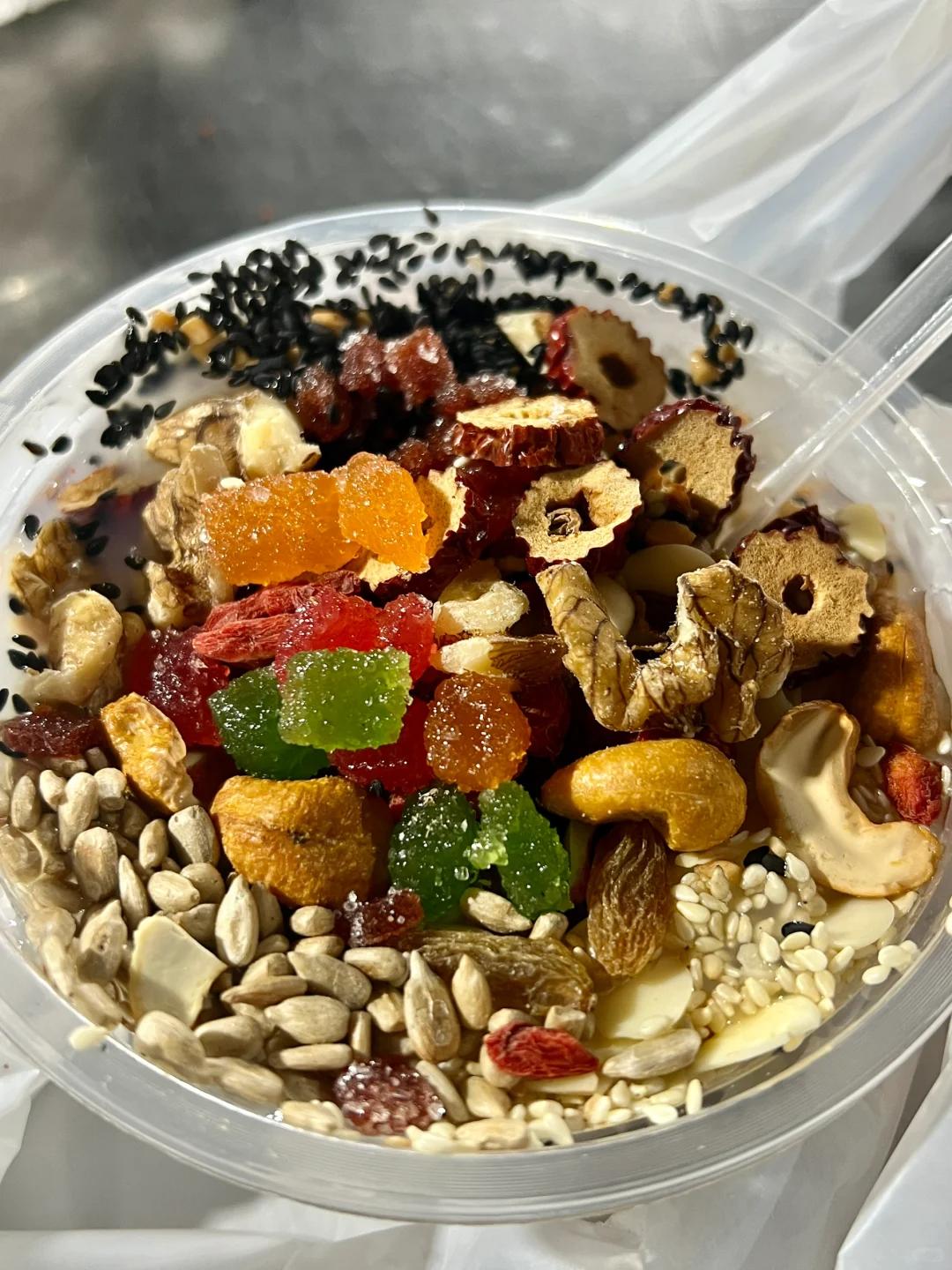 超多的用料搭配杏仁风味独特的甜蜜,喝上一口黏糊糊的,还觉得特别的养生,完全没有负罪感。