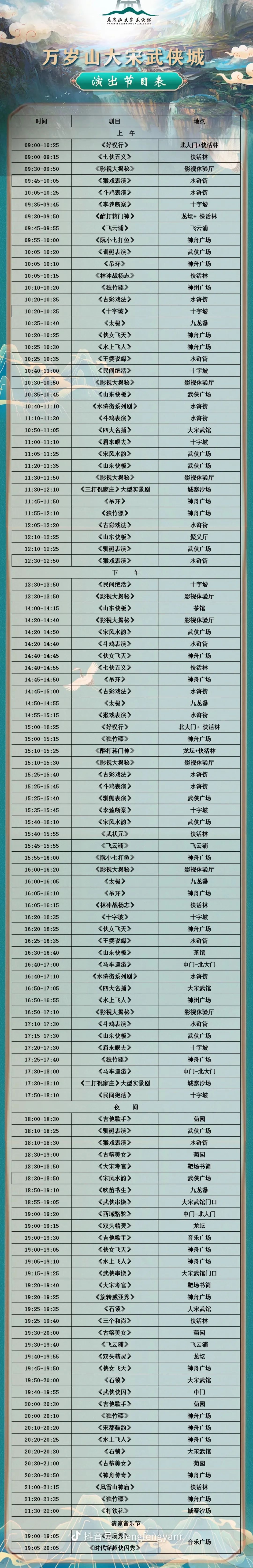 最后附上一张开封万岁山时间表
