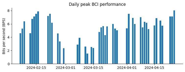 通过修改解码电极信号的算法,Neuralink 能够将 BPS 值恢复到柔性线偏离脱落之前的水平。根据 Neuralink 的说法,这些修改调整包括使植入物「对神经群体信号更加敏感」,改进将这些信号转化为光标移动的技术等。Neuralink 称,调整后 BPS 值有所改善并保持稳定。