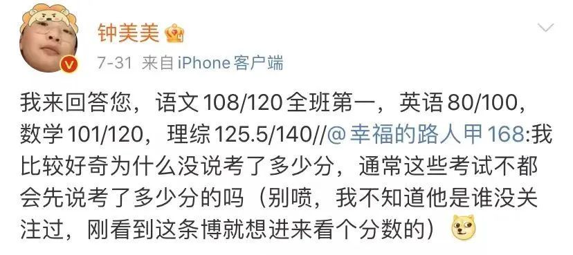 然而就在两年后,钟美美用自己的中考成绩狠狠打脸了这些人。