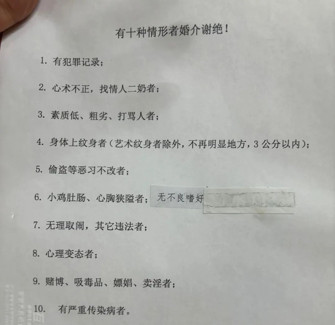 李继延的办法很简单,就是通过不断的聊天。有些人很赤裸,会明确提出物质条件,比如希望女方至少有3套房,现金流800万以上。李继延很直接地告诉对方,“你不是体制内的还这么高要求,不现实,建议去别的婚介所问问。”碰到这样的,他根本不废话,直接拉黑。