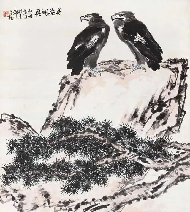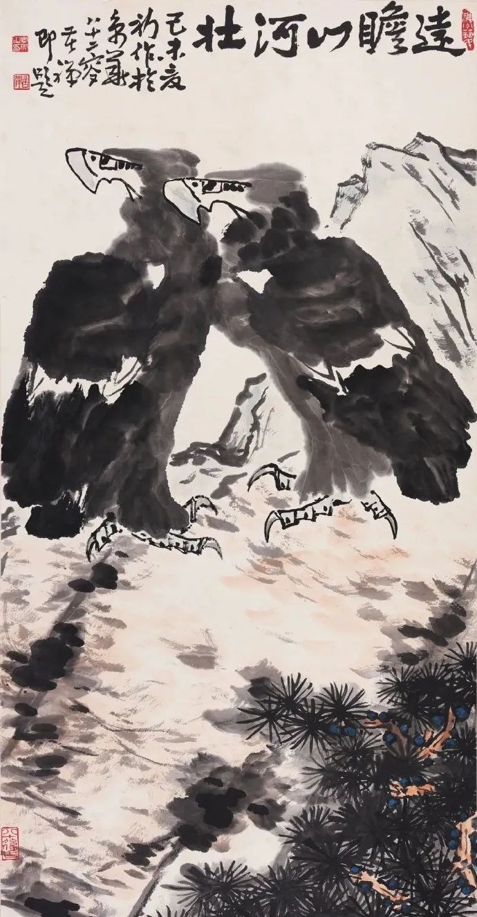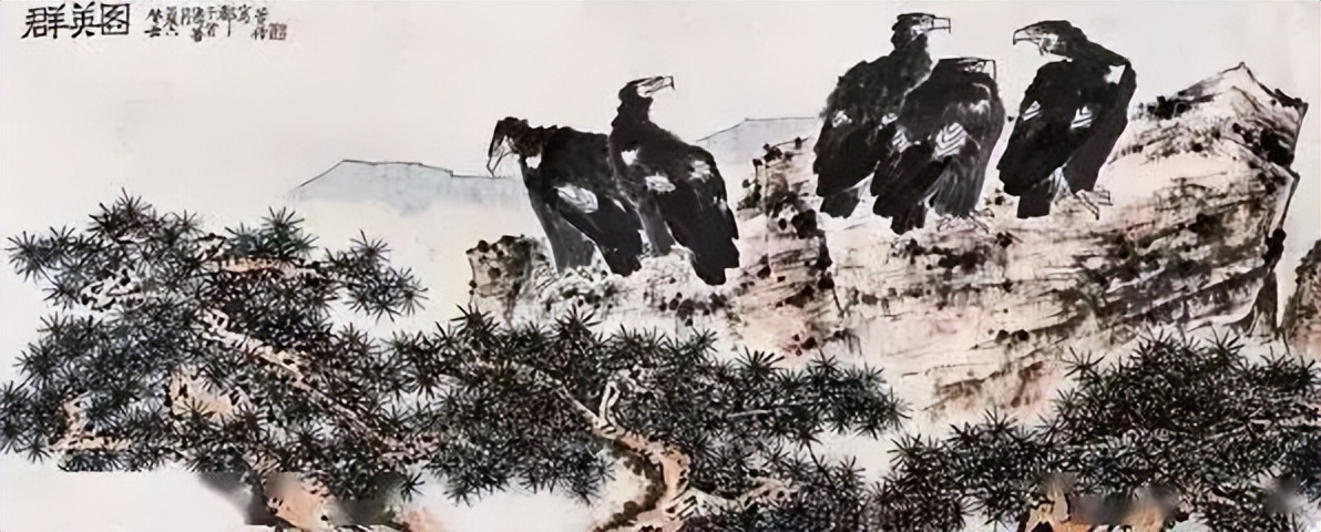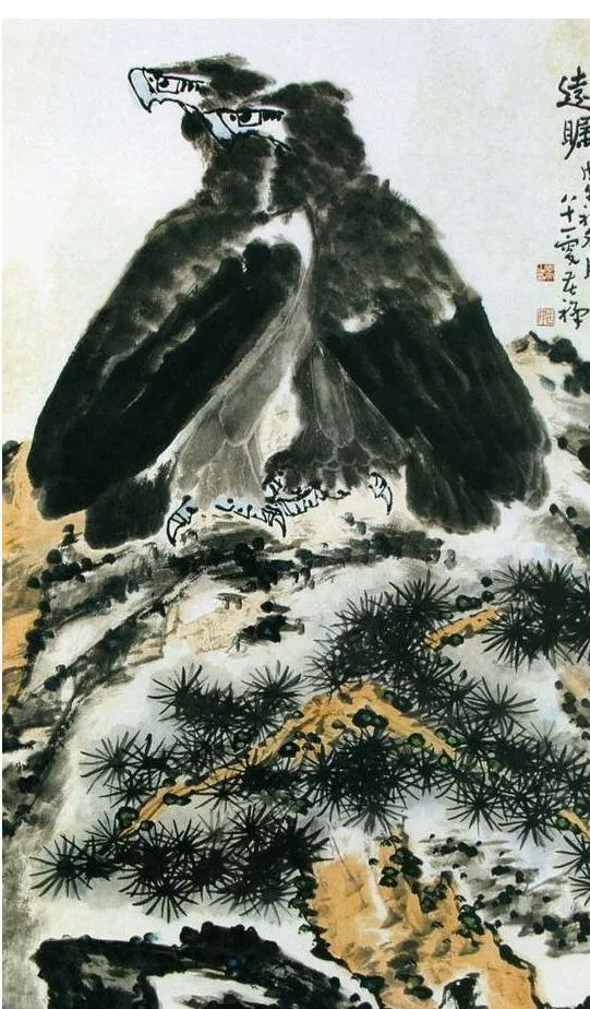 李苦禅擅画鹰,笔力雄健,夸张变形极具个人风格,可谓一绝,成为近现代画坛中最叫响的个人代表题材之一。