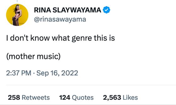 甚至歌手Rina Sawayama将自己一首新歌的流派定义为了只可意会不可言传的mother music。