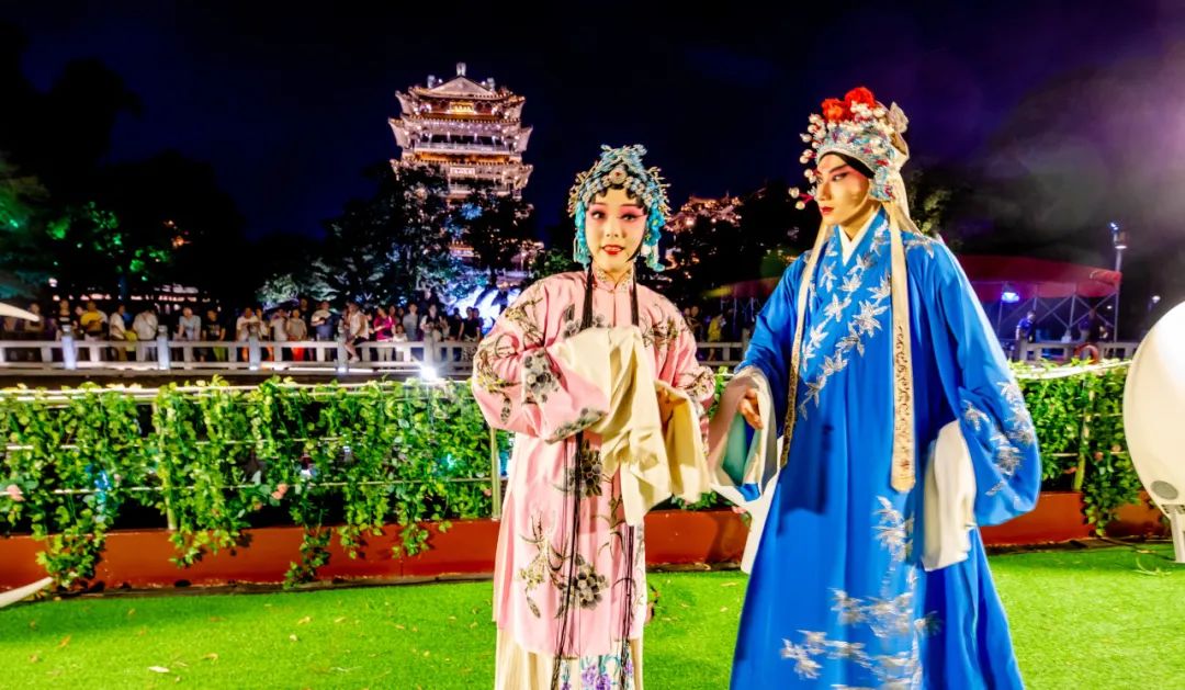 京剧演员们身着华服翩翩起舞
