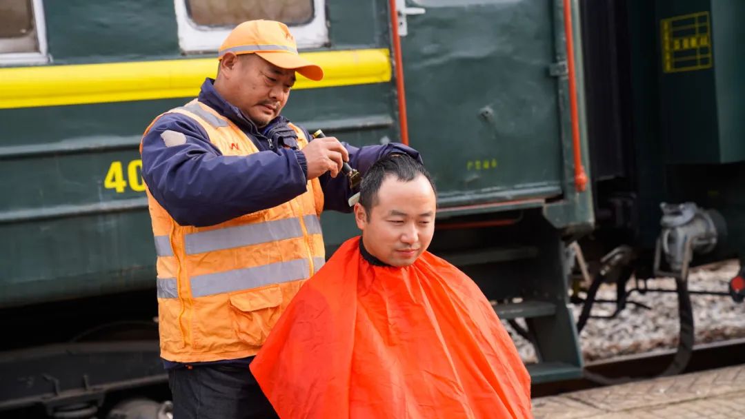 考虑到施工地点比较偏僻车上安排职工兼职“理发师”