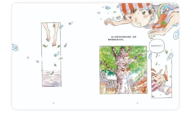 这是漫画家聂峻在2016年出版的《老街的童话》中第一个故事《鱼儿》,其中还有《虫儿》《信》《画儿》三个故事,都发生在鱼儿、爷爷和胡同里街坊邻居之间,有的穿越到爷爷的童年时代,有的串起了爷爷和奶奶最初相遇的美好回忆,有的关联到极富人情味儿的邻里生活。在一连串欢闹的碰撞和关照之后,鱼儿跟着爷爷最好的朋友葫芦爷爷学起了画画,找到了自己生命中的真爱。