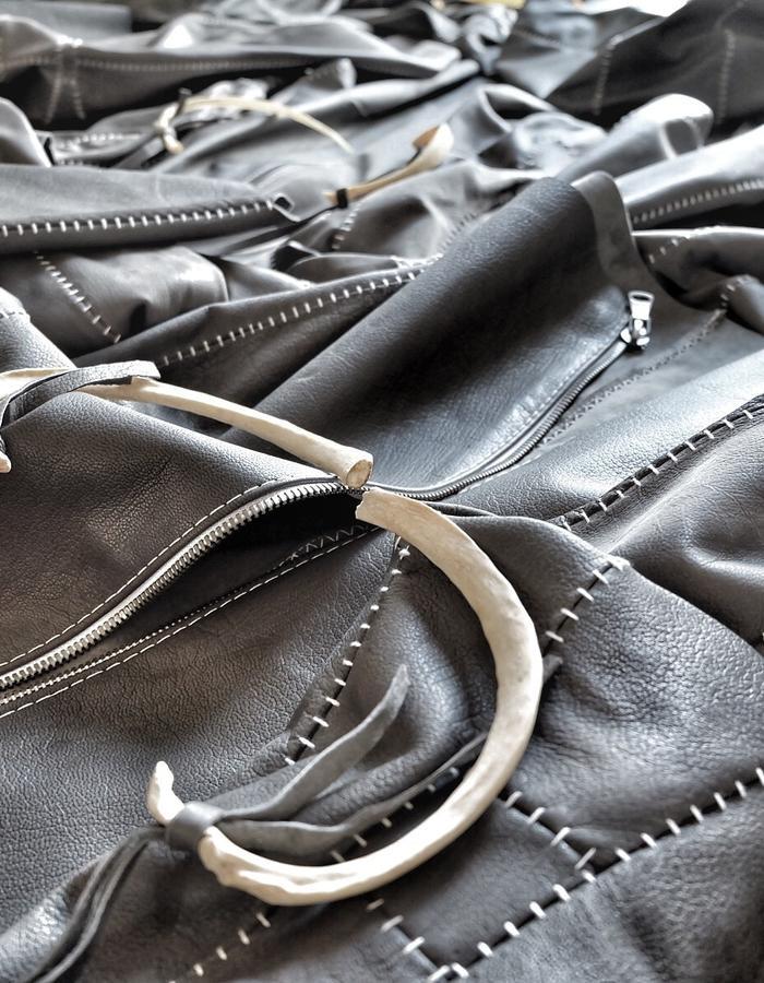 但是,设计师本人没有认可这个说法,他解释道:“在制作这个系列的时候,我没有去部落采购,这些骨头是从加拿大通过正规的医学手段获得的,属于医疗剩余用品。”