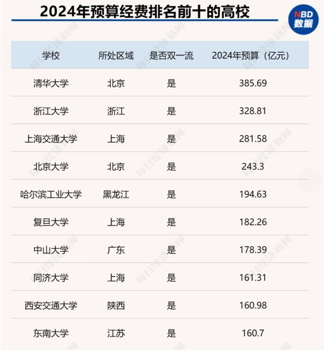 有媒体梳理山东、山西、河南、河北预算经费排名前十的高校后发现,仅山东大学2024年的经费预算挤入“百亿俱乐部”,达139.71亿元。