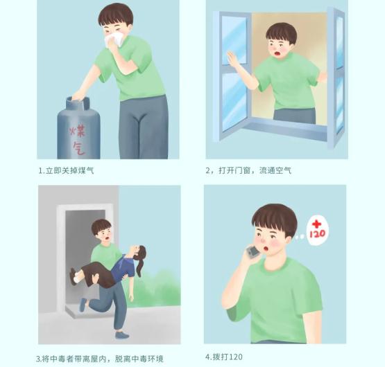 ◆ 立即关闭煤气阀门,打开门窗,让患者处于空气流通的地方,保持呼吸道顺畅,仰卧、保暖,并尽快送医治疗;