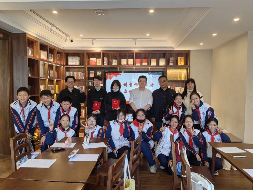 1927·鲁迅与内山纪念书局店长王文彦介绍,这是“大先生会客厅”系列文化讲座首次走出书店举办。上海市民办新复兴初级中学与1927·鲁迅与内山纪念书局同在四川北路,是隔着甜爱路的“邻居”。自书局开业以来,这里成为同学们经常光顾的地方,学校也在此组织同学开展阅读活动。就在4月下旬,学校、书局“结对”成功,上海市民办新复兴初级中学聘请书局三位工作人员成为“校外辅导员”,参与学校的“大思政课”系列活动。