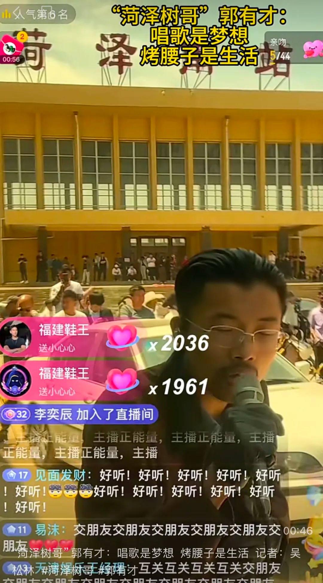 直播时的郭有才站在菏泽南站广场