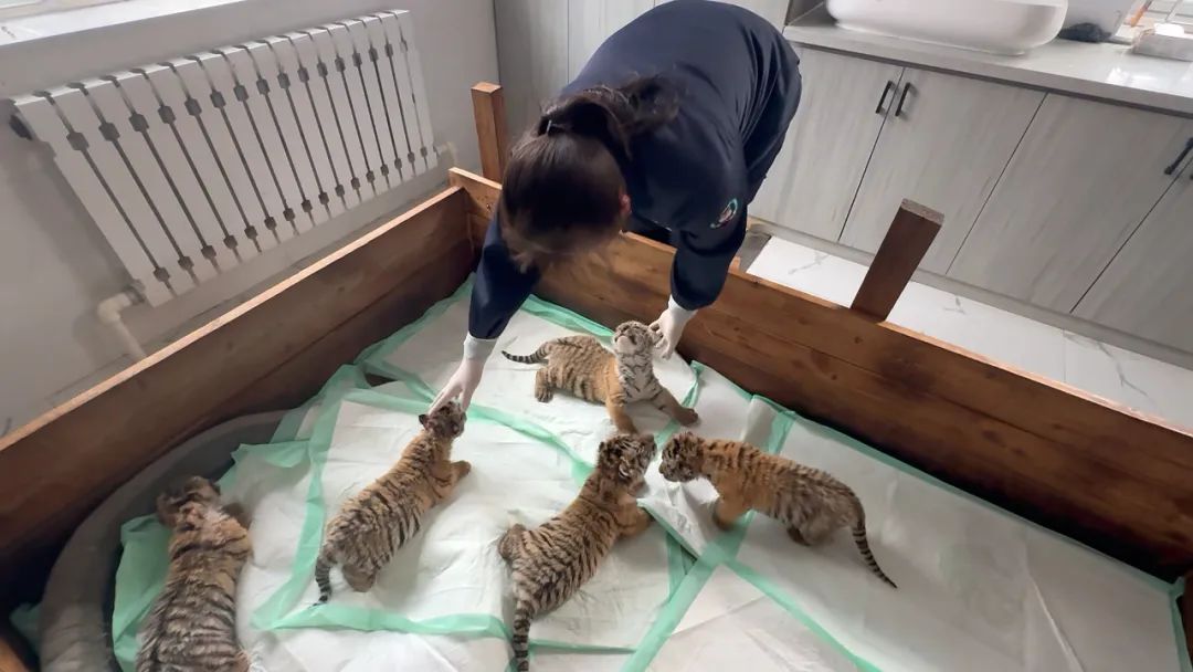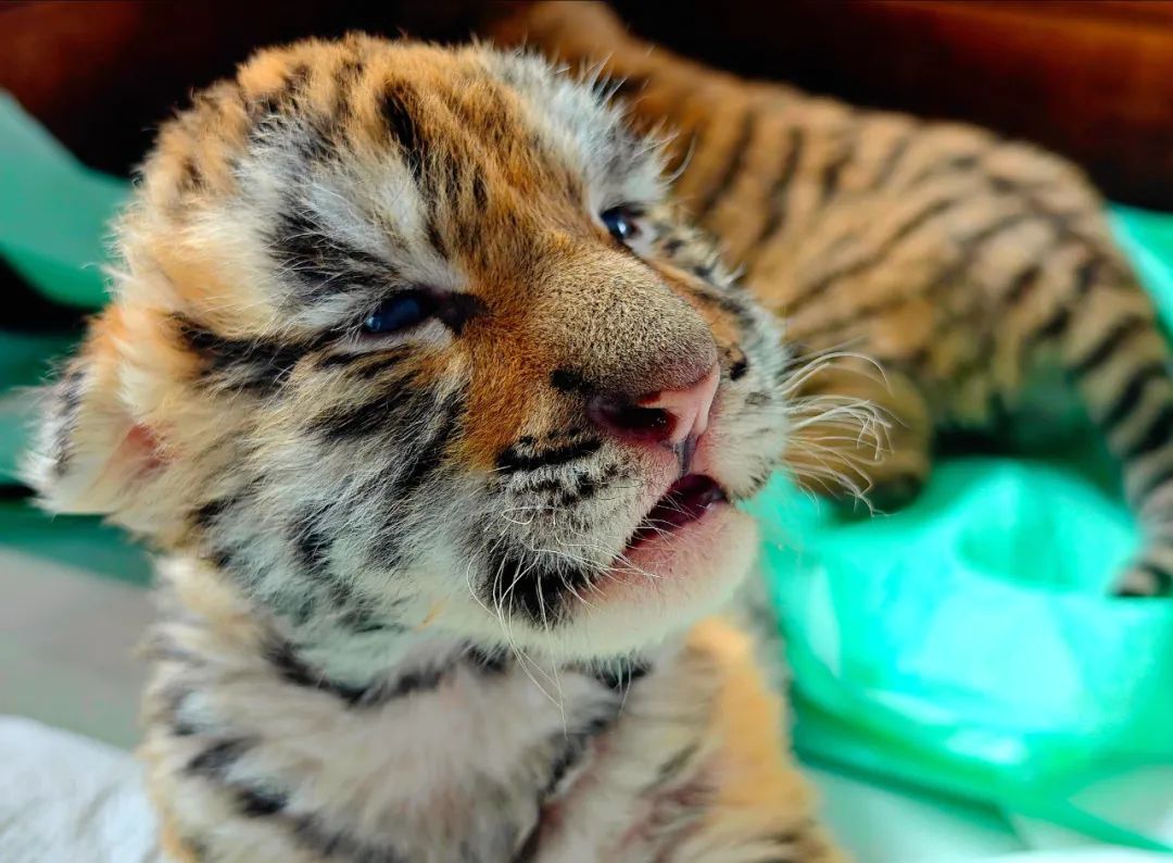 小东北虎5月1日1时23分,三只东北虎妈妈顺利产下5只幼崽,3只雄性和2只雌性。由于小东北虎们出生时体质较弱,饲养员们将它们放入保温箱中。经过了十多天的悉心照料,5只小东北虎的身体状况良好。