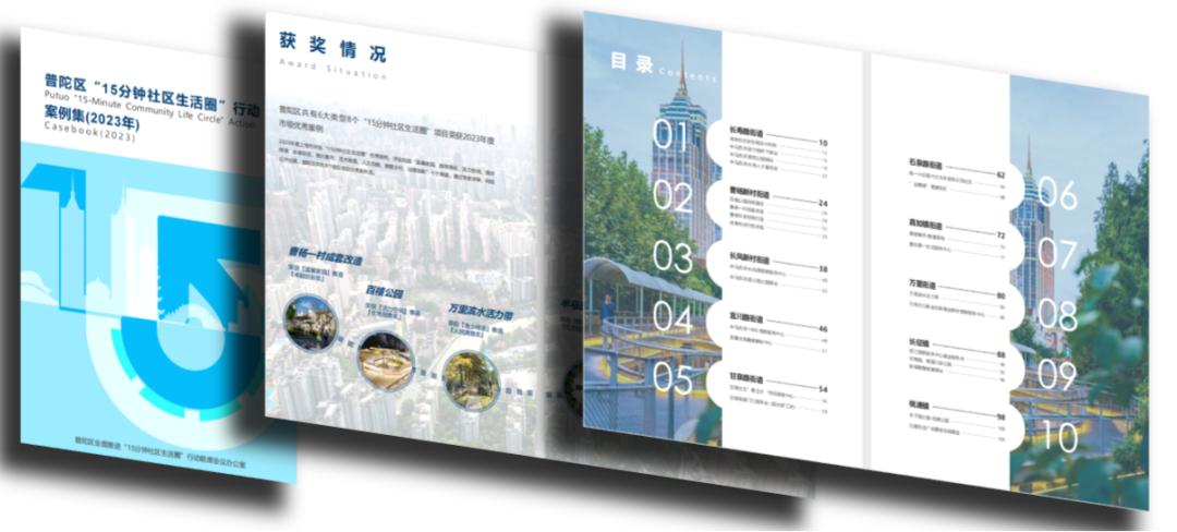 普陀区“15分钟社区生活圈”行动案例集为扩大生活圈示范效应,区联席办还精心策划并编制了《普陀区“15分钟社区生活圈”行动案例集(2023年)》,选取25个有影响力的项目,展示普陀区的建设成果和治理成效,推广创新方法,供相关工作参考。今后也将持续收集新的优秀案例,扩大行动的影响力。同时,通过多渠道、多形式来加强对外宣传,定期发布专题报道和视频,吸引更多关注和认可。
